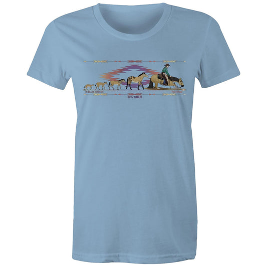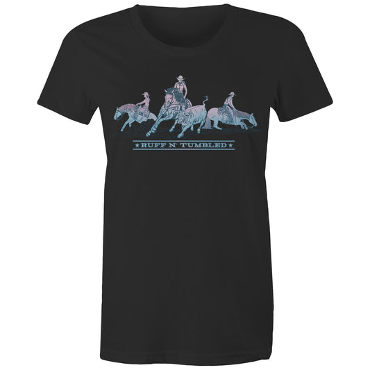 Reined Cow Horse Trio (Blue Print) - Womens T-Shirt