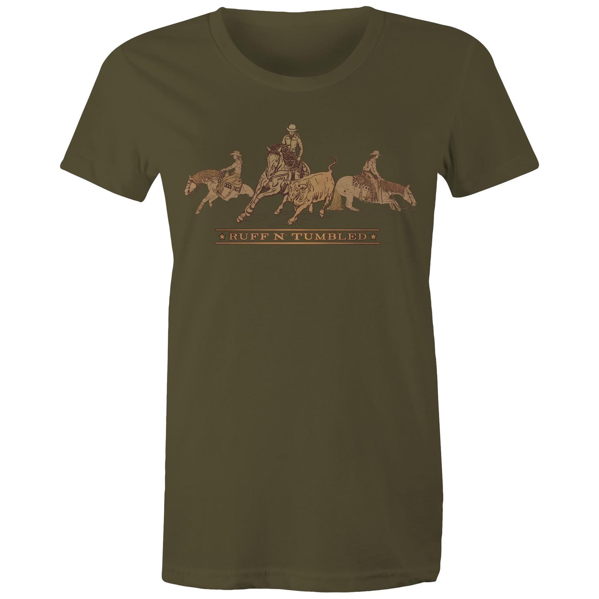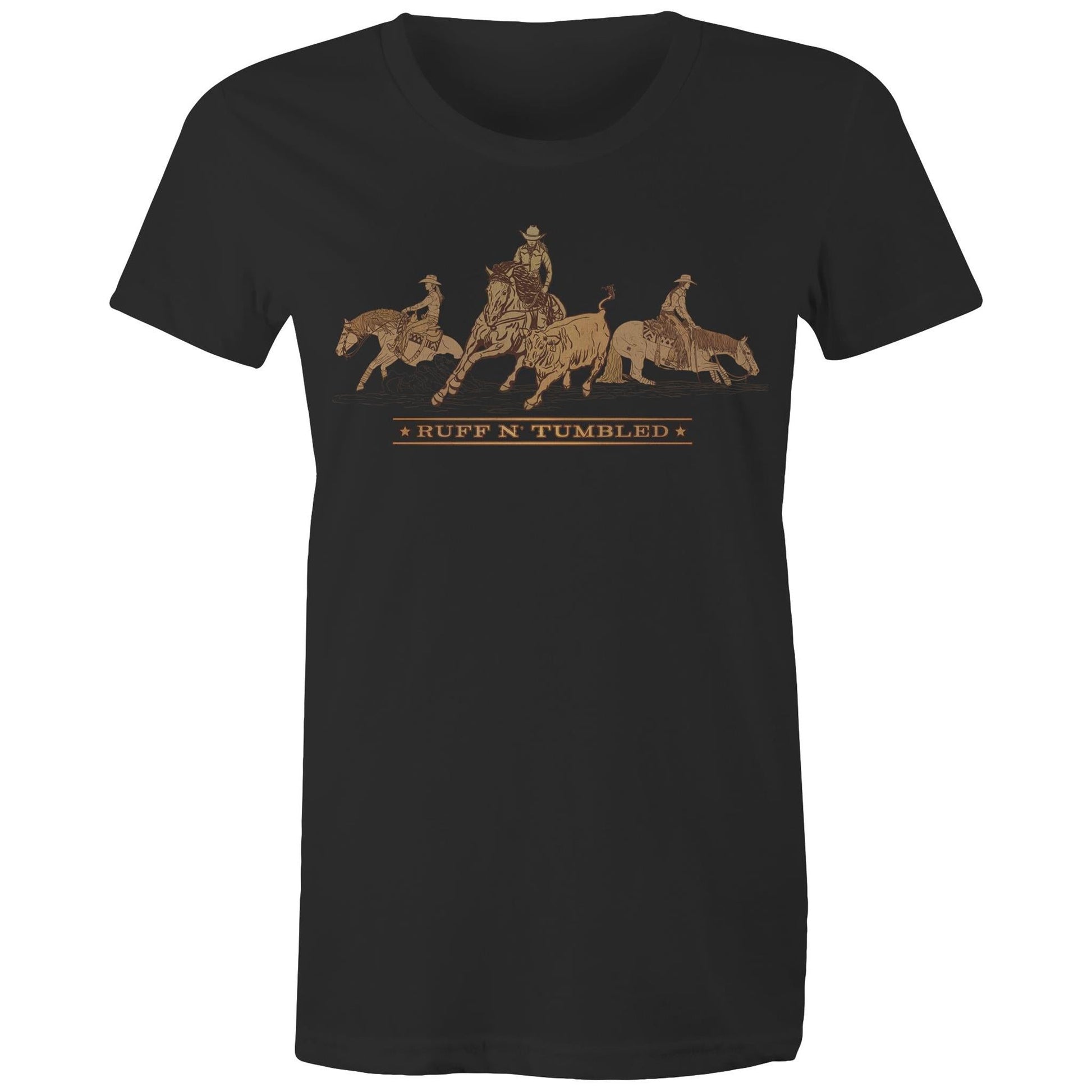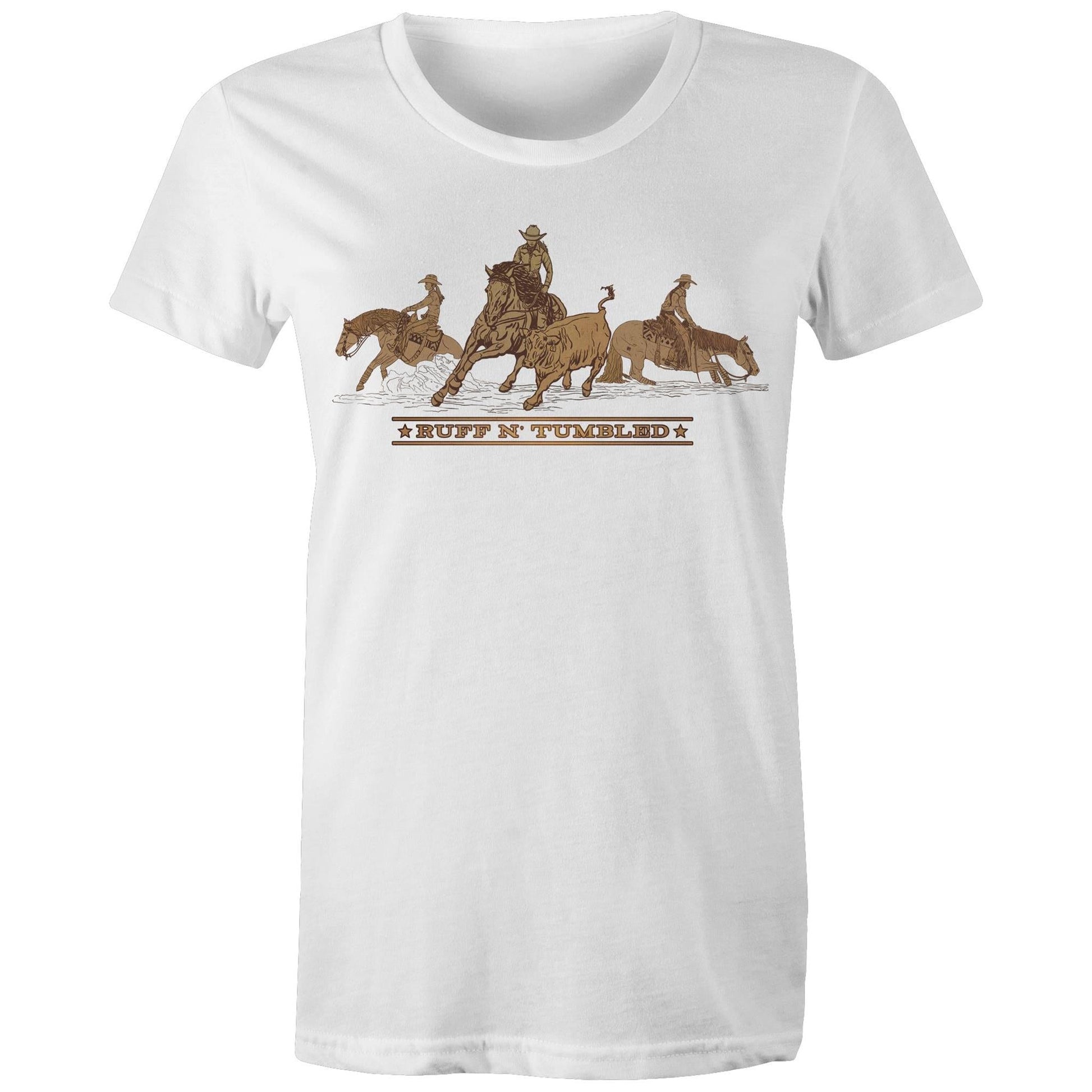Reined Cow Horse Trio (Brown Print) - Womens T-Shirt