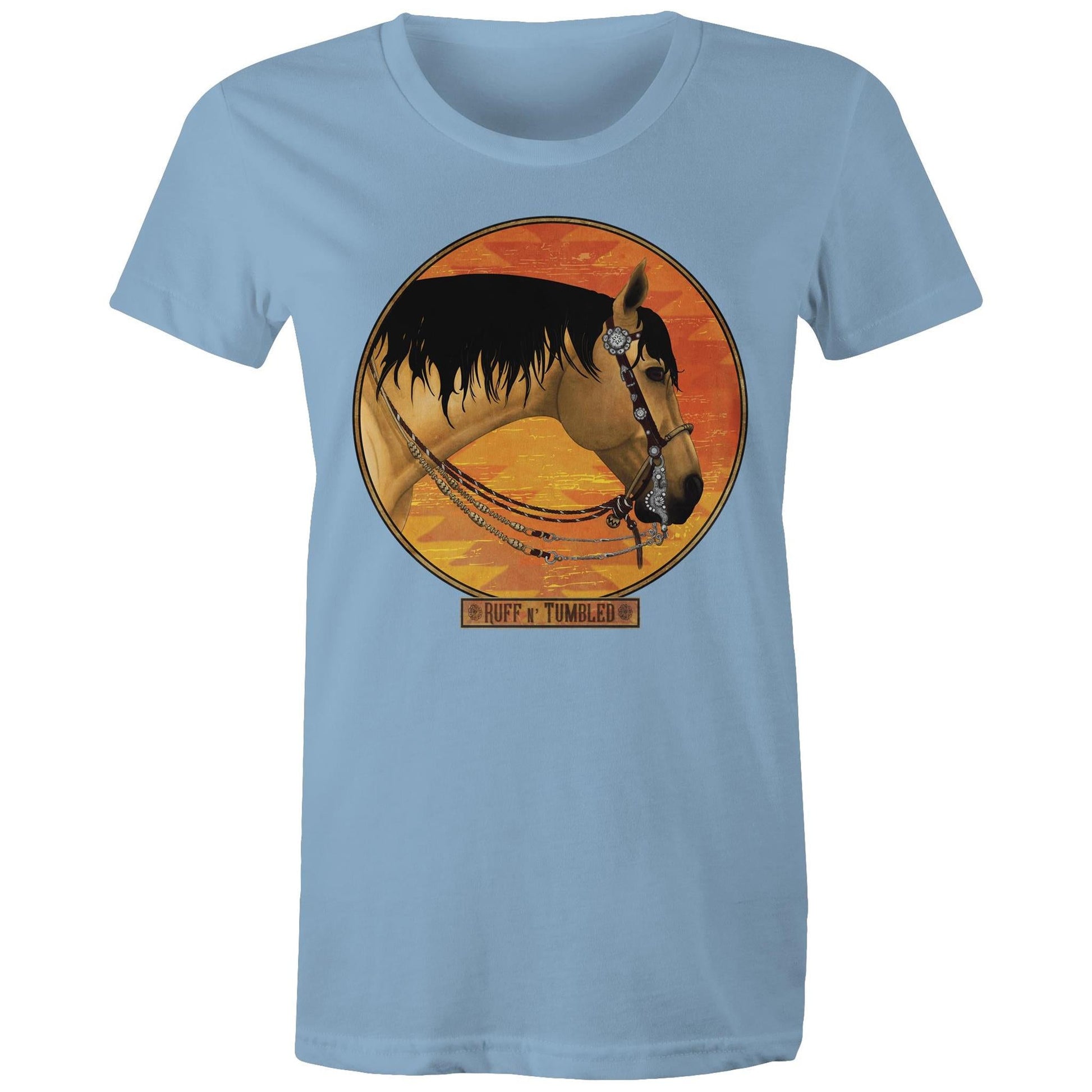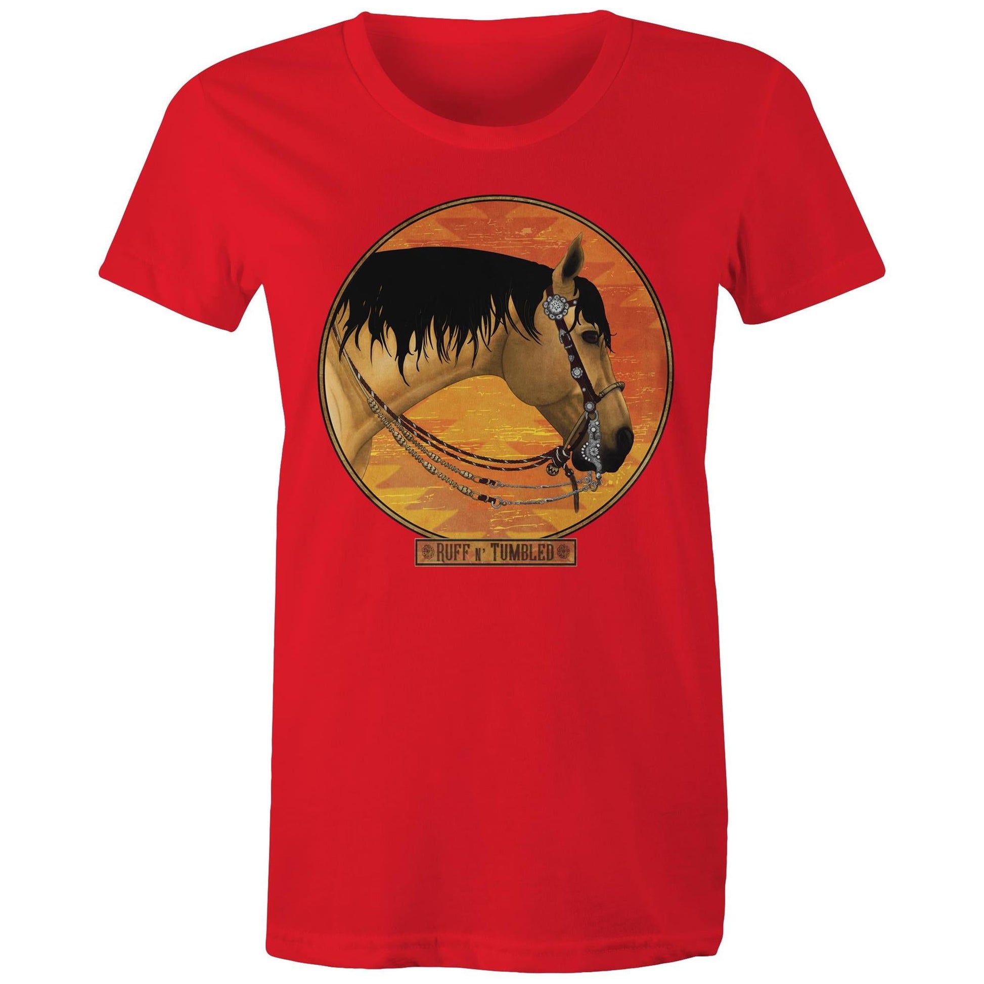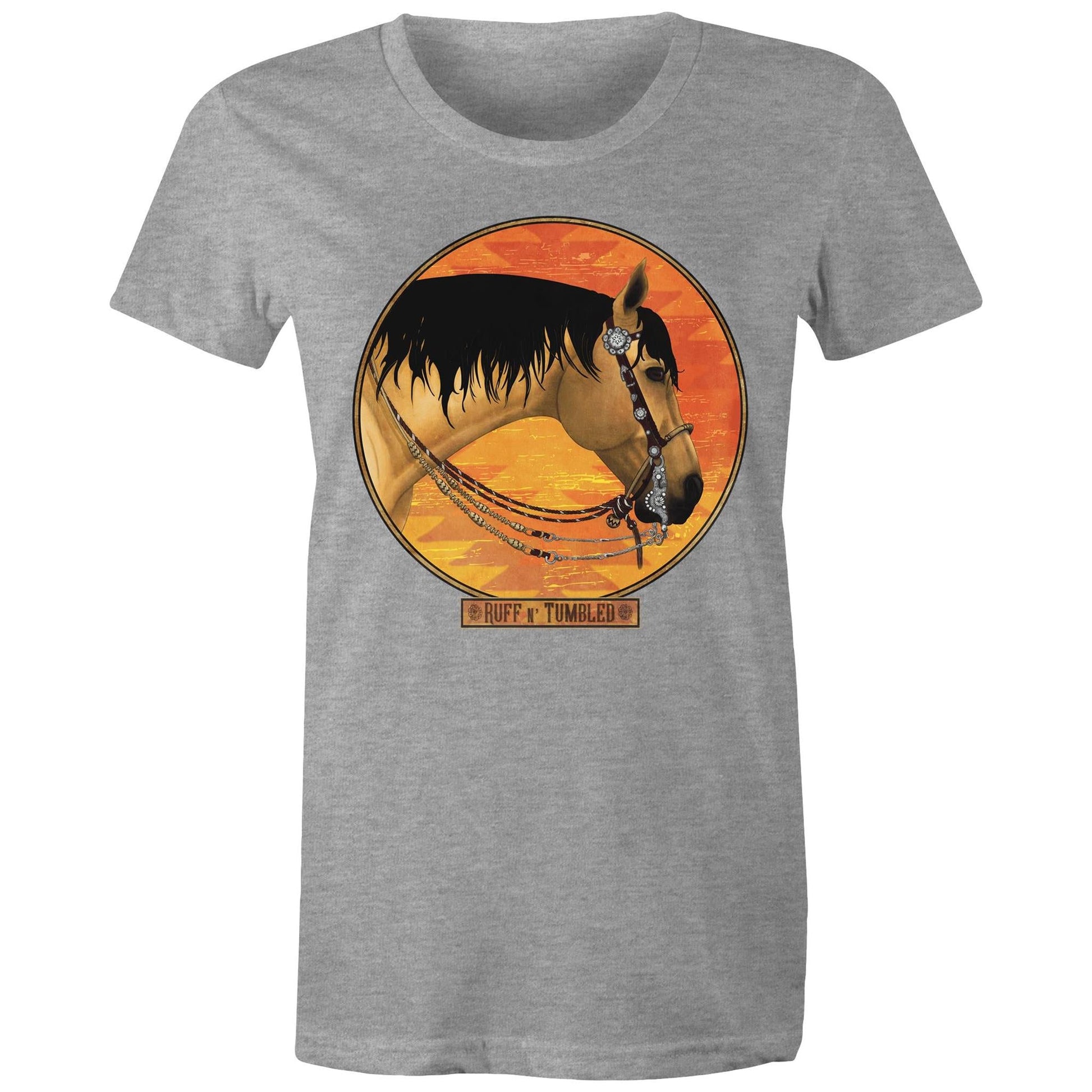 Keep it ranchy with this premium tee printed with our Two Rein Buckskin horse design!